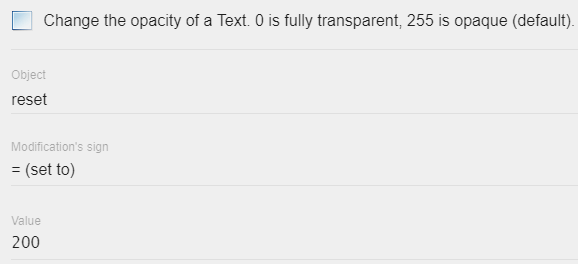 Text objects are used to display text on screen. You can customize the properties of a text object (for example, font size or colour) when you create the object. You can also modify the properties of a text object during gameplay using events.